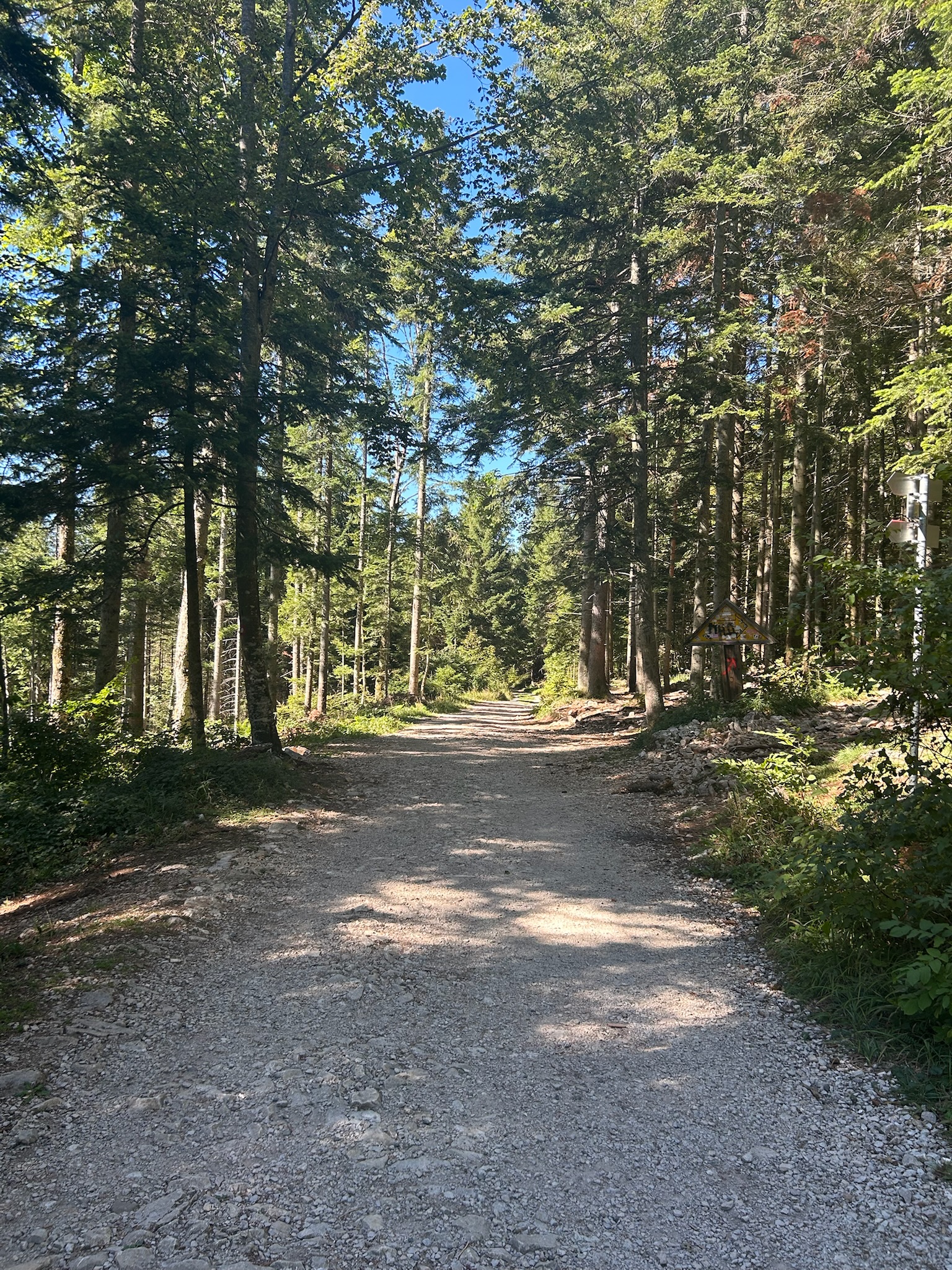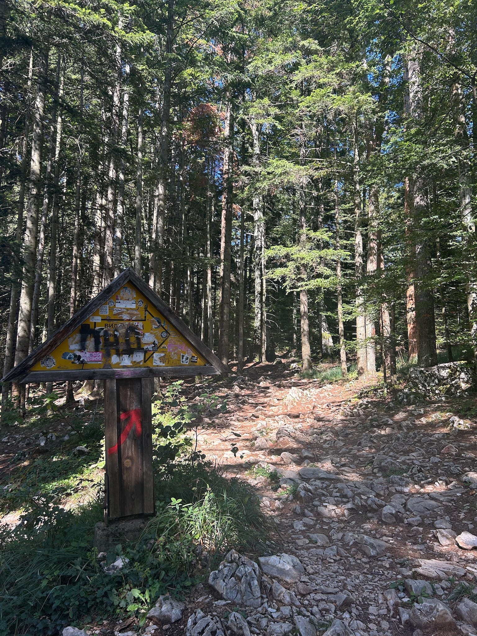 Efter et stykke tid kommer du dybere ind i skoven, hvor terrænet ændrer sig. Her begynder ruten for alvor at stige, og du bevæger dig ud på en lang sektion med sten og klipper, som du følger hele vejen op. Det er en lidt mere udfordrende del af turen, men stadig overskuelig – og det er netop denne del, der gør vandringen sjov og varieret.