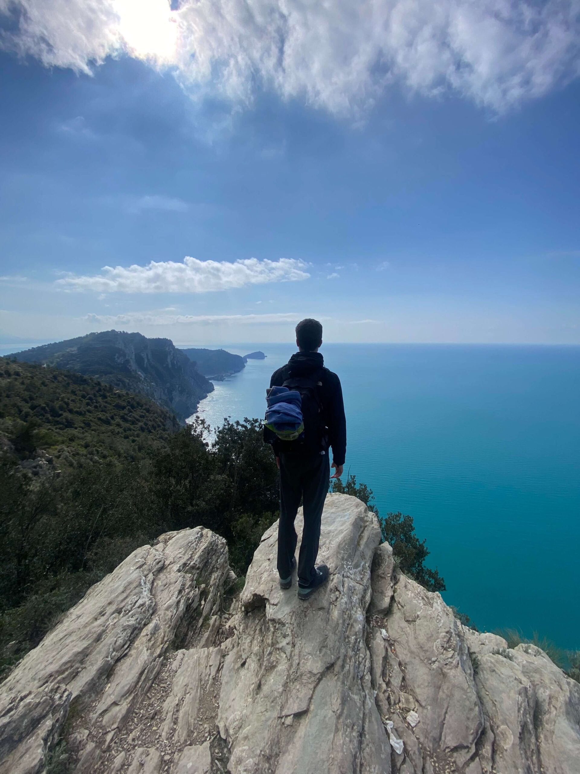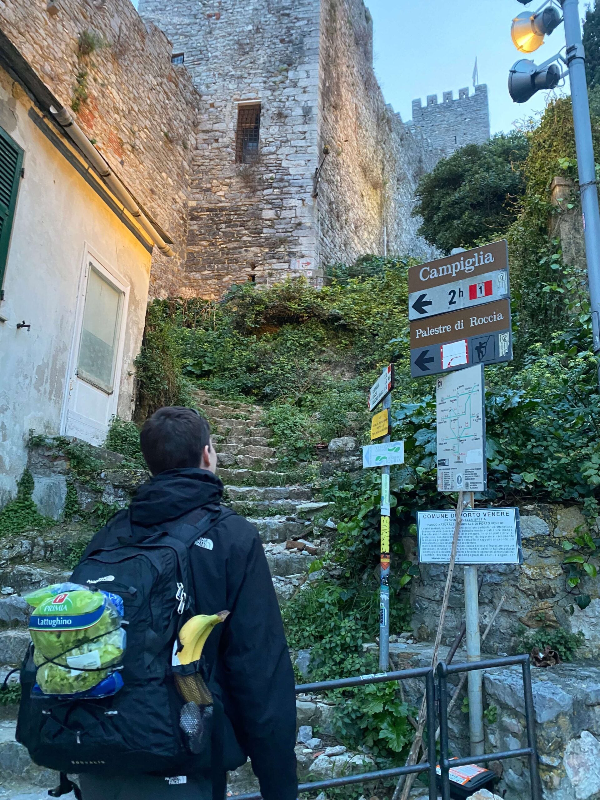 Vi opholdte os i byen, Bologna, i dagene op til vores vandretur. Vi tog fra Bologna et tog til La Spezia, som er tættest på Portovenere, hvorfra vi havde planlagt at starte. Den første dag gik derfor med at komme til La Spezia, se lidt af byen og ellers drage mod Portovenere, hvor vi havde bestilt en overnatning på et vandrehjem ved navn Rifugio Muzzerone.