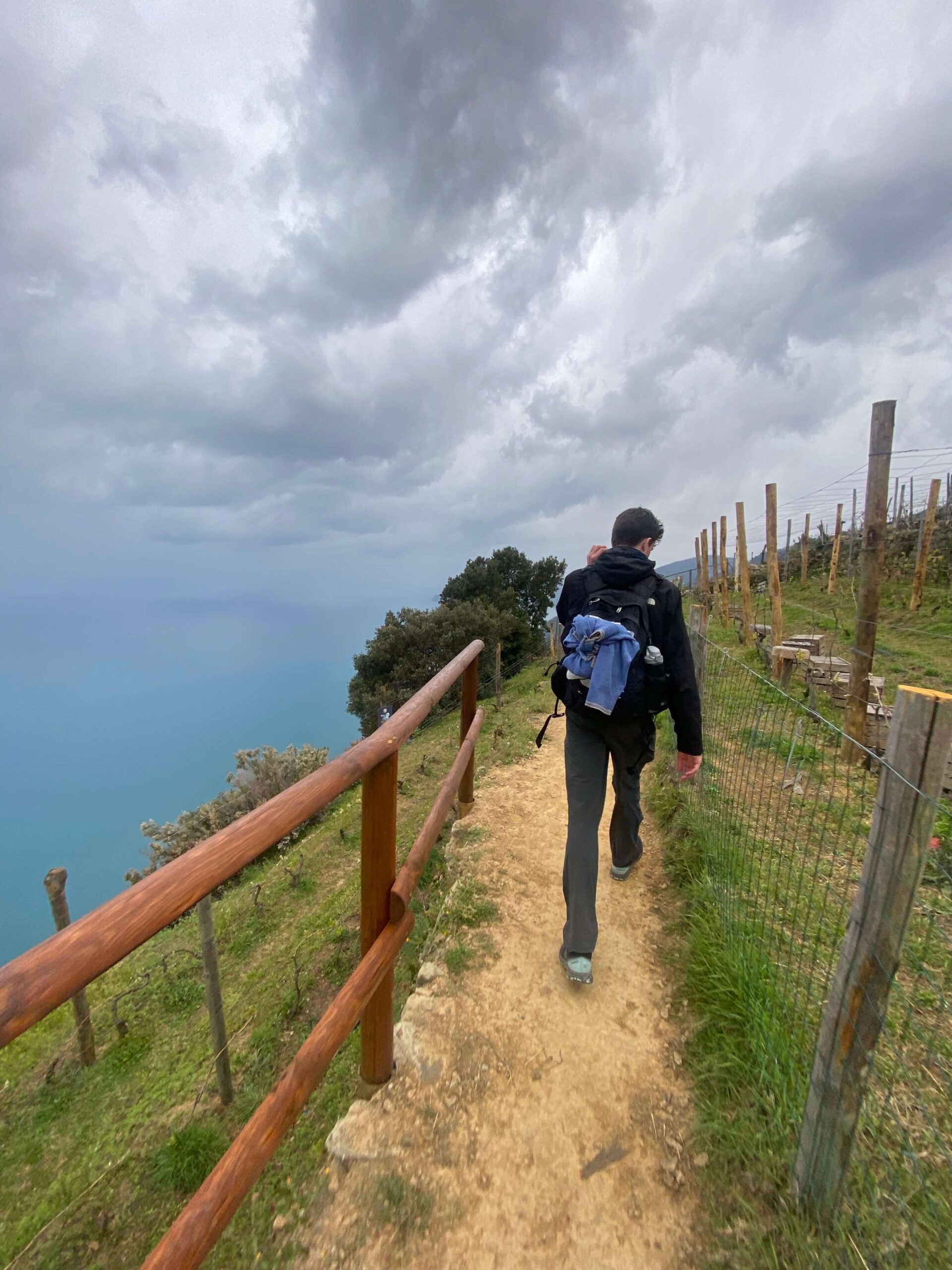 Efter en længere vandretur i Cinque Terre med op- og nedture, solskin og overskyet vejr samt masse af højdemeter, begyndte vi endelig at kunne se Riomaggiore.