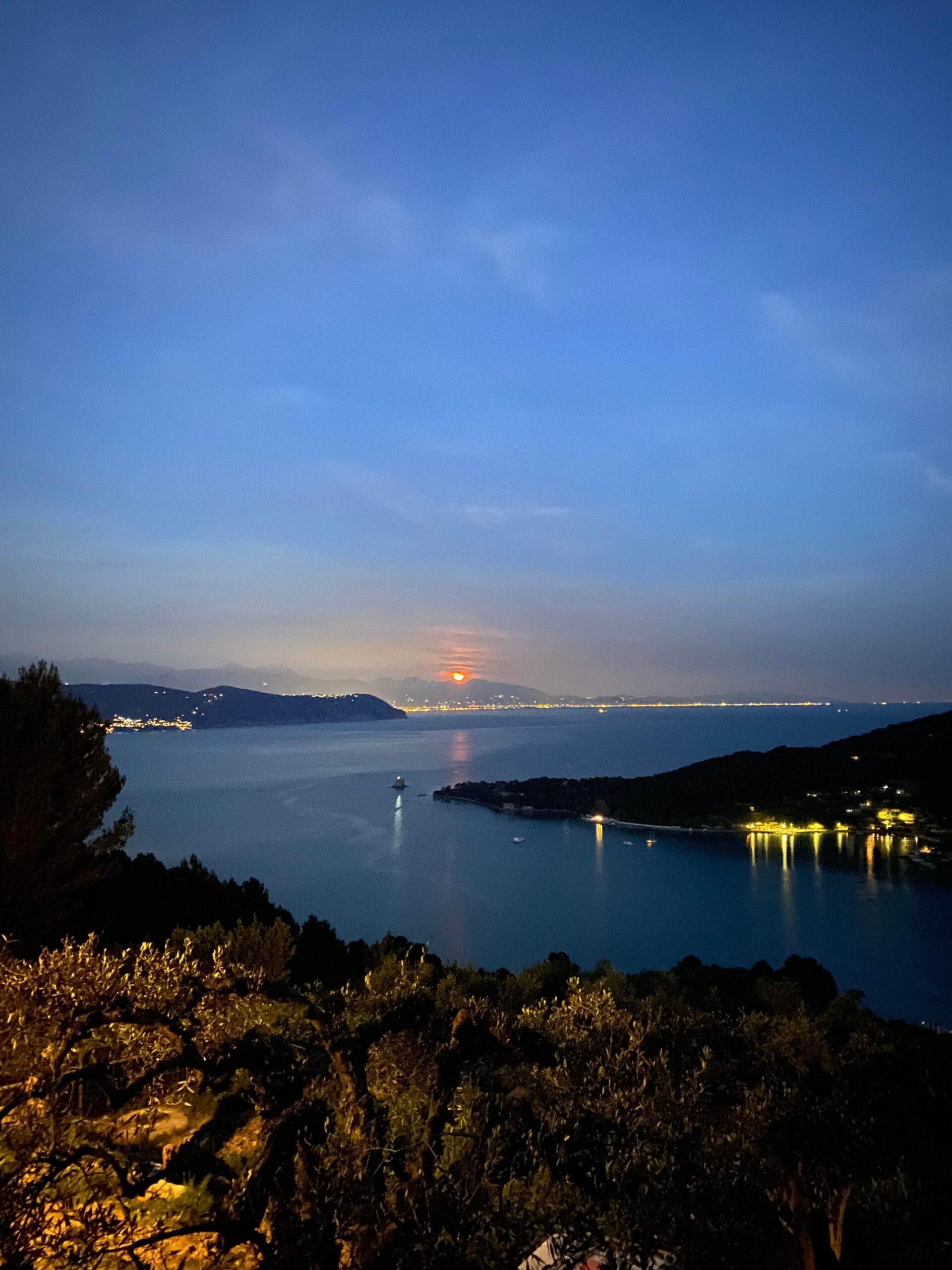 Udsigten fra det lille vandrehjem, Muzzerone, var fantastisk. Billedet til venstre er fra aftenen vi ankom, og vi sad udenfor i nogle minutter og blev betragtede, tog luften ind og nød det. Fantastisk!