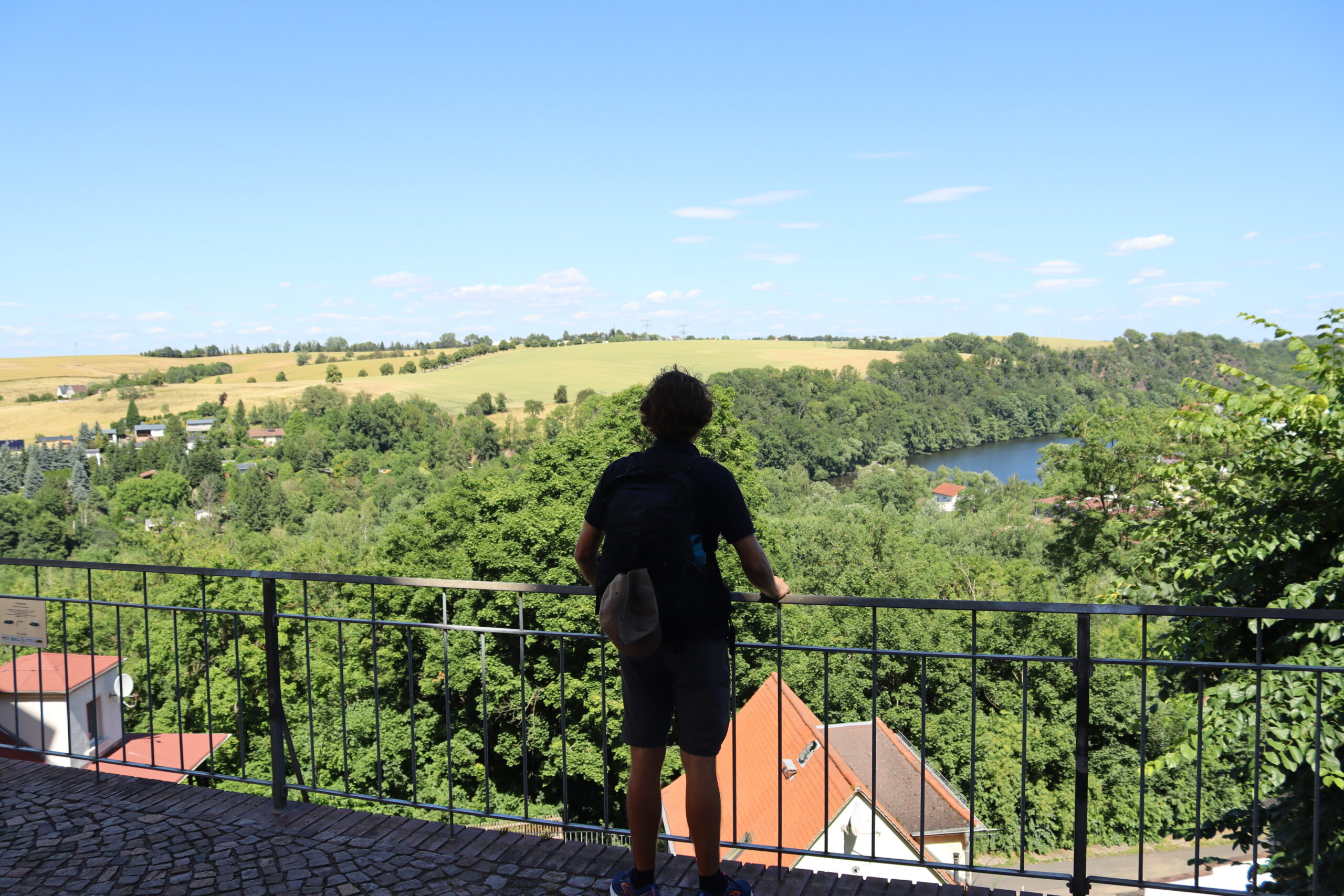 Lidt længere fremme gik vi over en bro med udsigt til floden Freiberger Mulde og det imponerende Mildenstein Slot, der troner højt oppe over landskabet. En vild kontrast til byens rolige stemning – og et syn, der gav os lyst til at komme i gang med dagens eventyr.