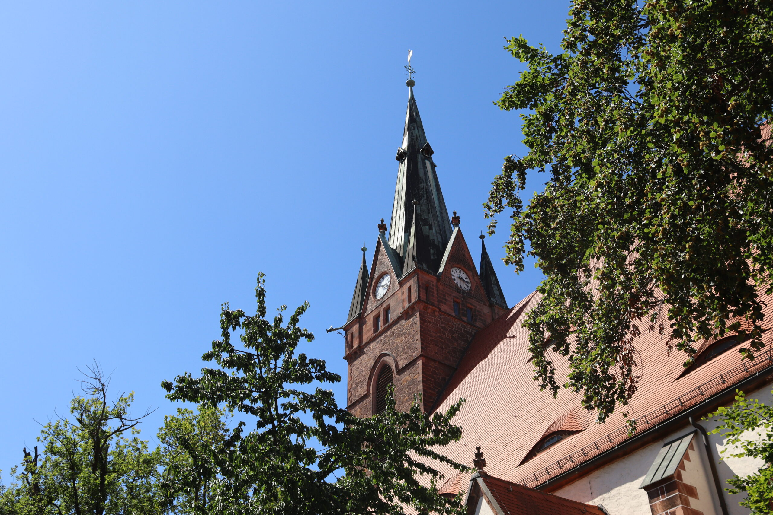 Turen starter midt i Leisnig – en hyggelig lille by, der allerede fra starten byder på kultur og historie. Vi fulgte ruten på Komoot og kom hurtigt forbi en smuk kirke, som vi selvfølgelig måtte beundre lidt, inden vi fortsatte.