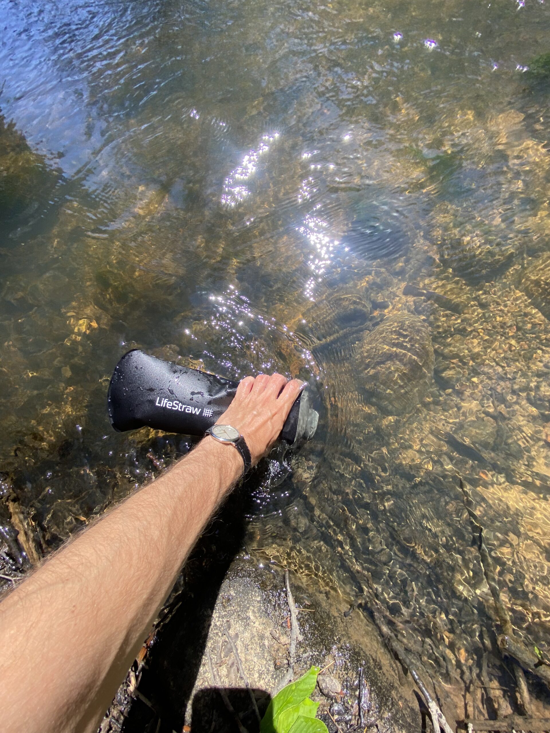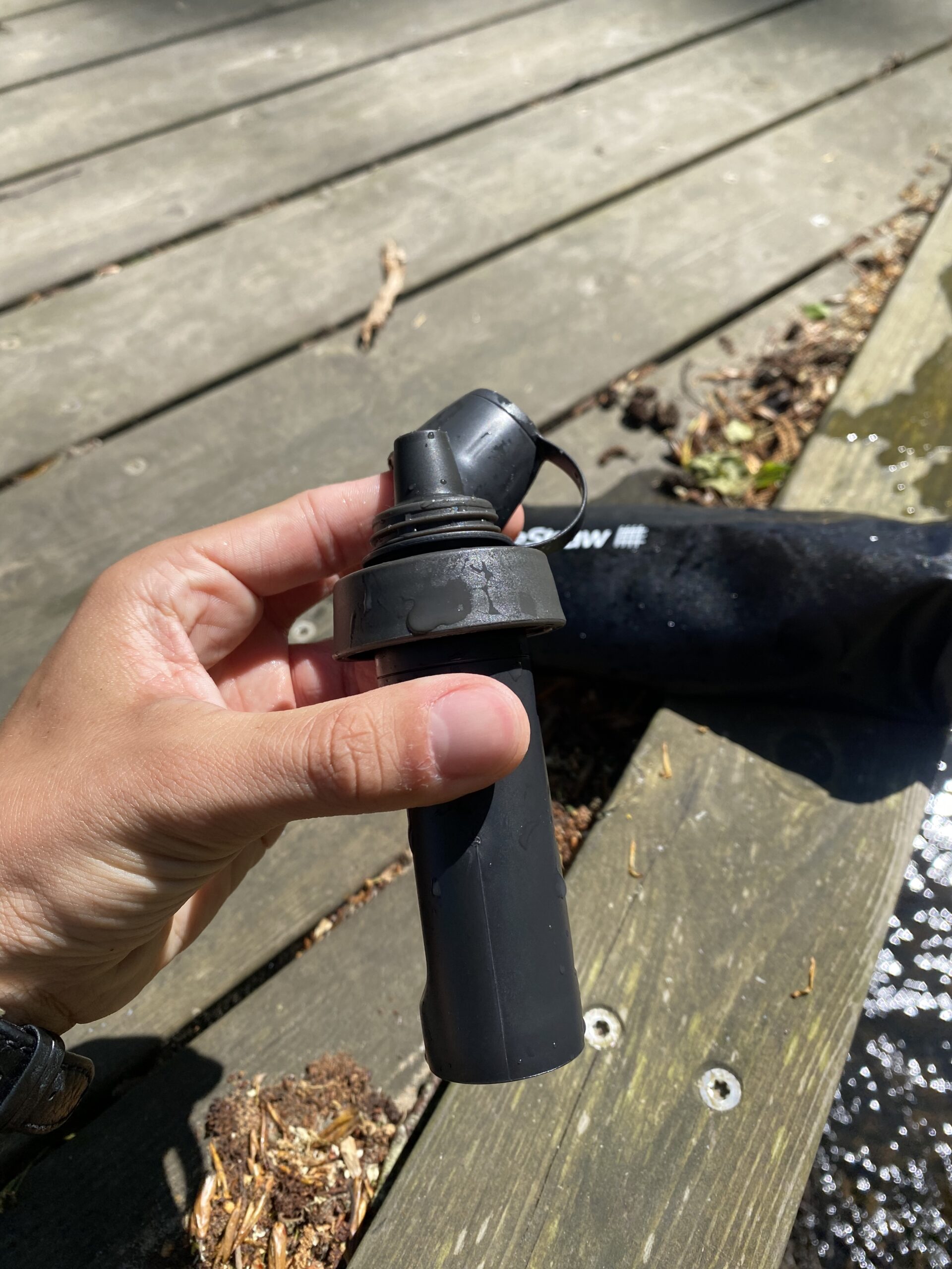 Under min vandretur på Kærlighedsstien Børkop havde jeg glemt at fylde vand op, men kom forbi en å, hvor jeg faktisk bare fyldte vand i min Lifestraw Peak Squeeze Bottle og sat tuden på igen, hvorefter den selv sørgede for at filtrere vandet, så det er rent.