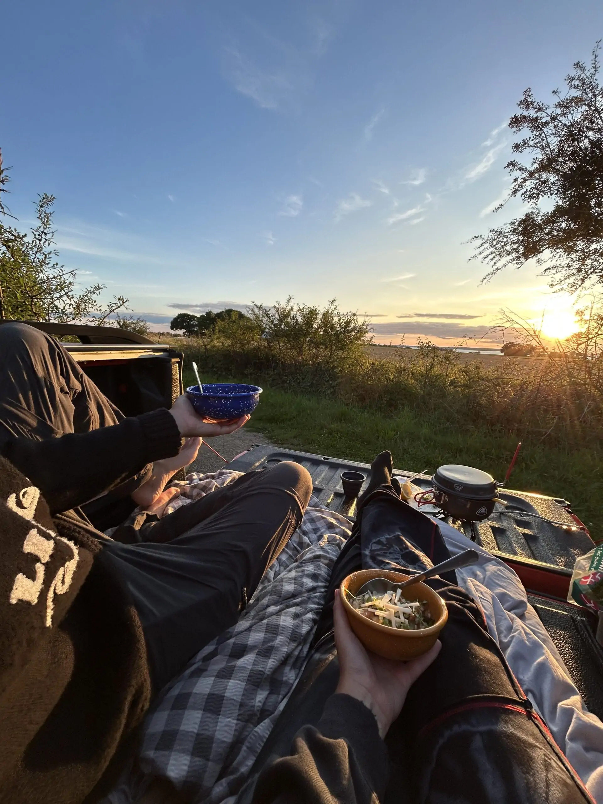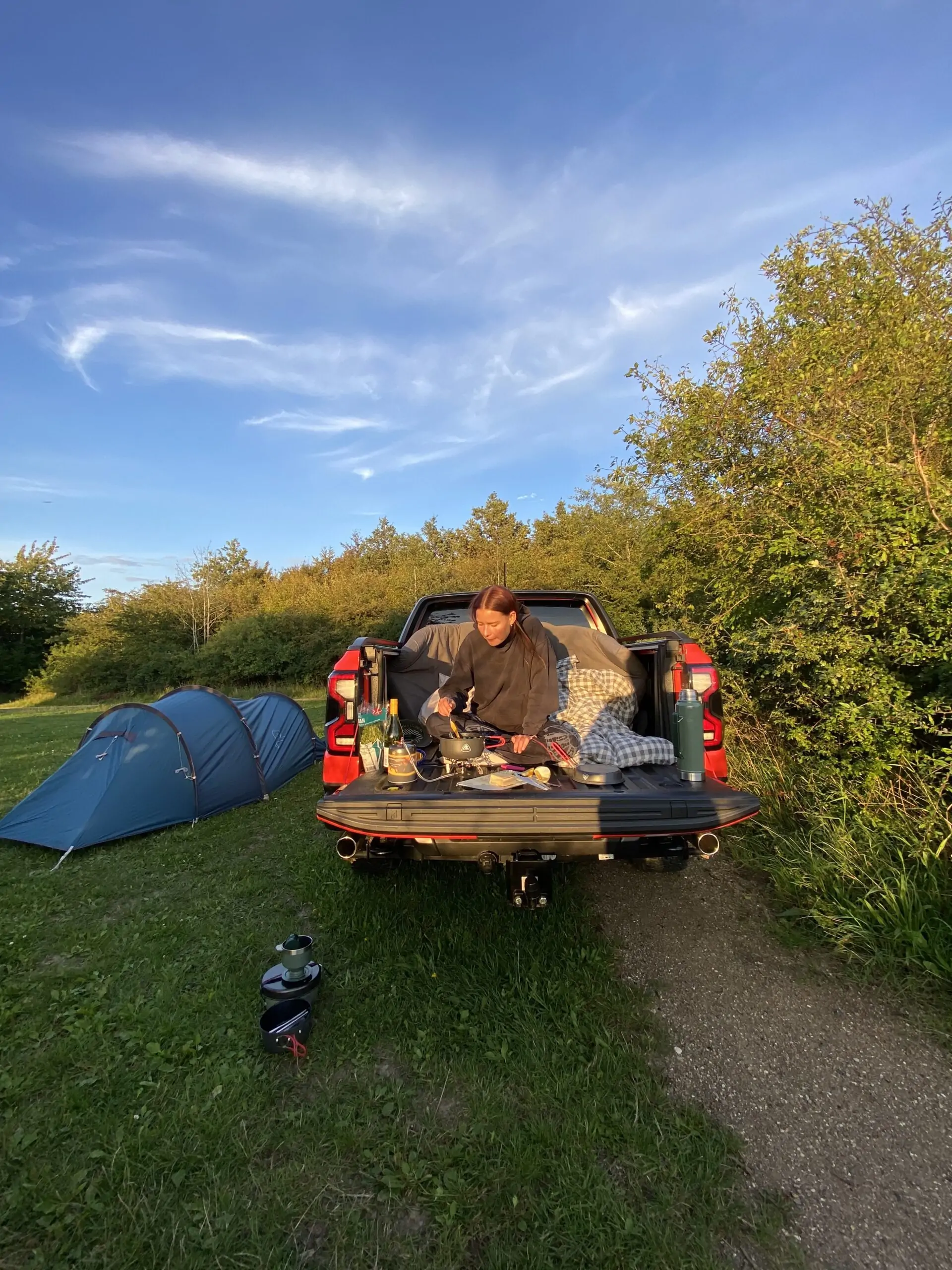 Find et flot sted i den danske natur, hvor du kan parkere og sætte op til madlavning.